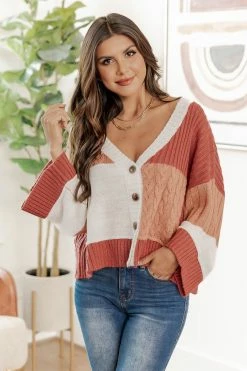 Best reviews of 🤩 Pink Lily Stick With Me Pink/Orange Colorblock Cable Knit Cardigan FINAL SALE 🥰