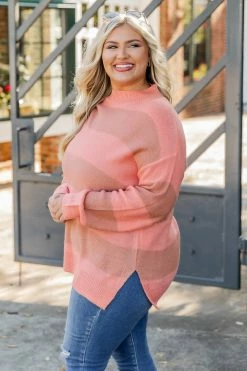 - Mock neck with long sleeves, ribbed hem, and side slit detailing