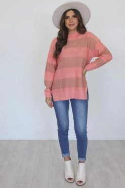 - Mock neck with long sleeves, ribbed hem, and side slit detailing
