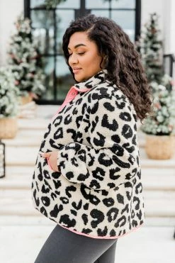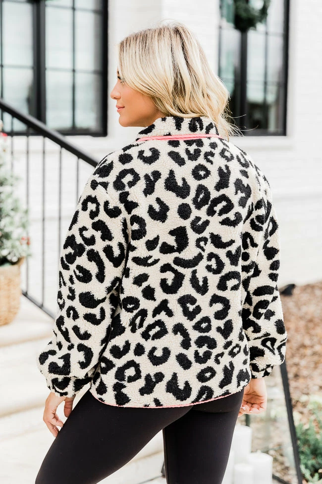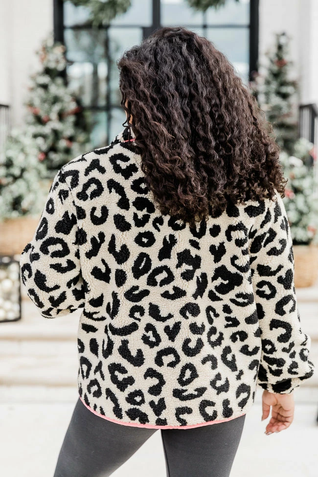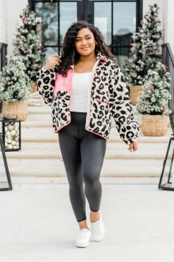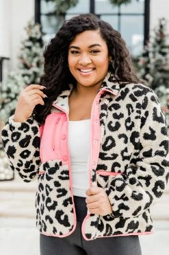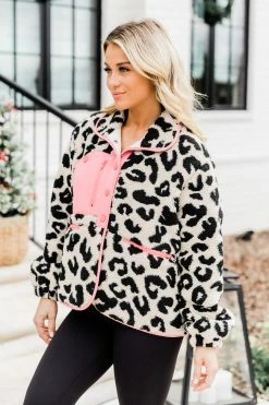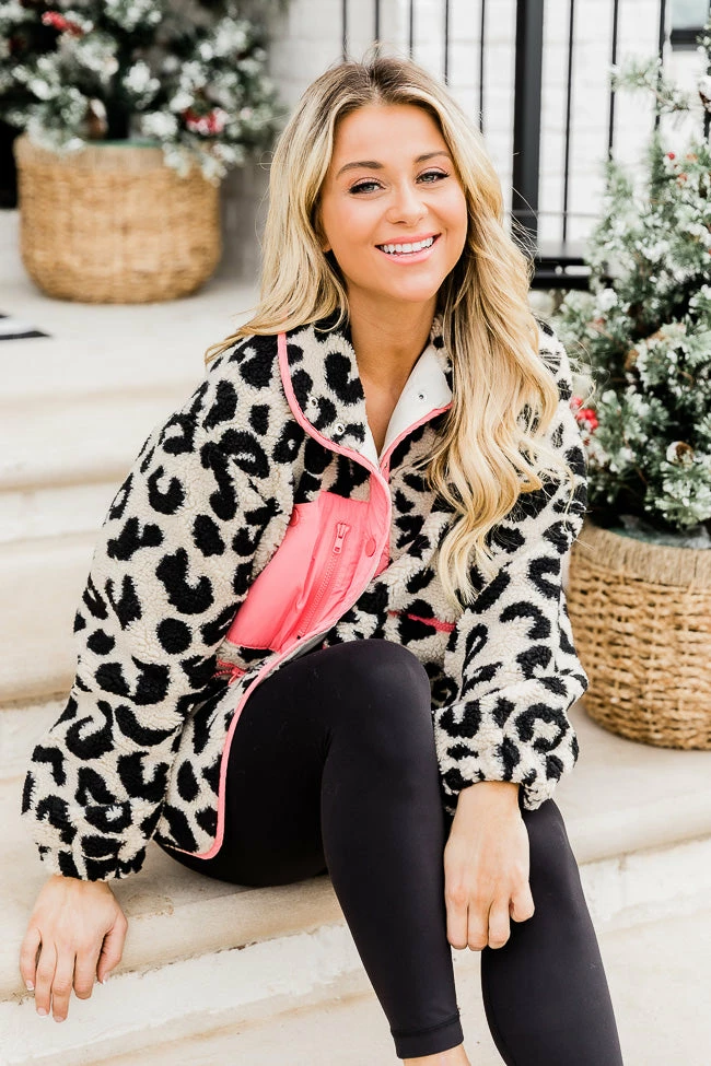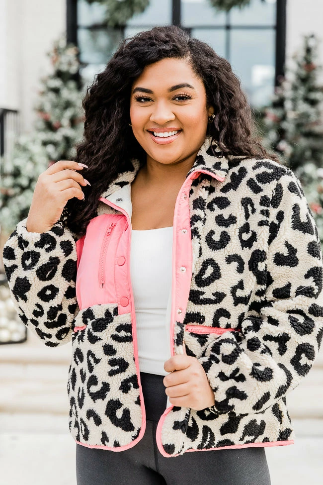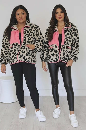 - Pink leopard print sherpa jacket