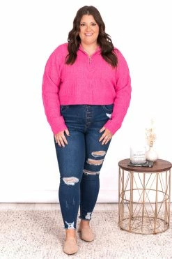 - Long sleeves with a quarter zip detail and cropped lengthย