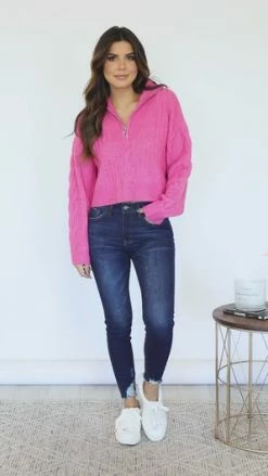 - Long sleeves with a quarter zip detail and cropped lengthย