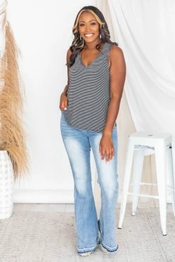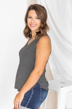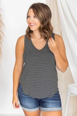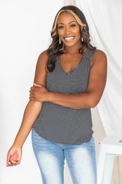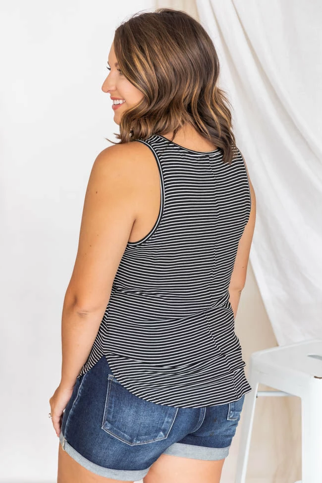New 🛒 Pink Lily Best Favor Black/White Stripe Tank FINAL SALE 👏