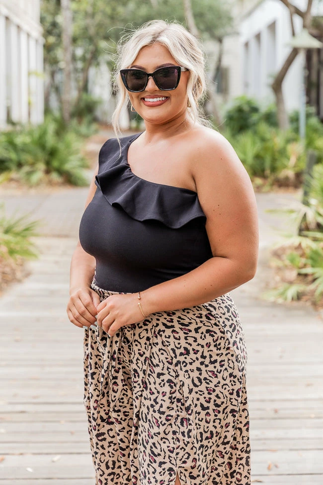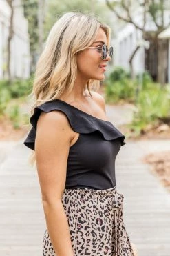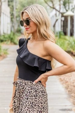 - Ruffle one shoulder