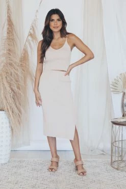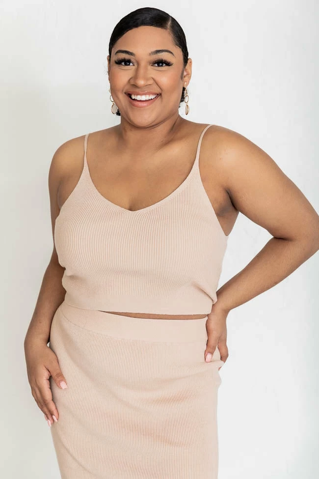 This cute cropped beige sweater tank is perfect for staying stylish all day long. We love the lightweight fabric and sleeveless cut. This will be your new fav in your closet. It also features a v-neckline and and lightly ribbed fabric. Pair this tank with jeans or the matching skirt for a cute outfit!