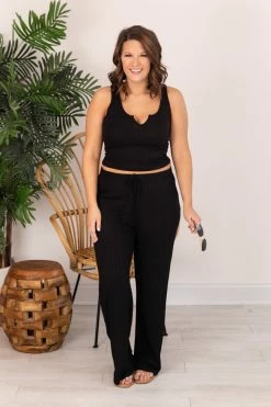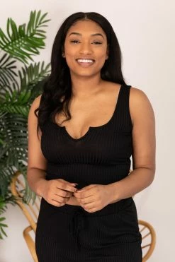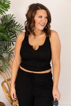 Wholesale โจ Pink Lily Different Opinions Ribbed Black Tank FINAL SALE ๐