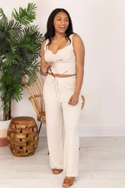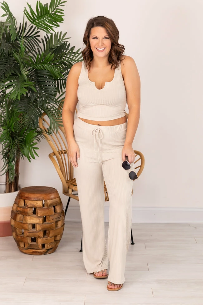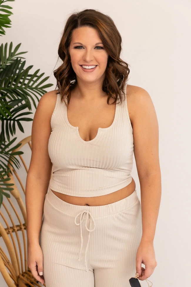 Hot Sale ๐งจ Pink Lily Different Opinions Ribbed Taupe Tank FINAL SALE ๐