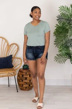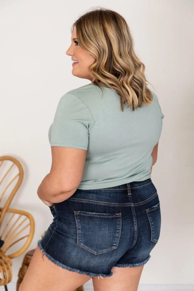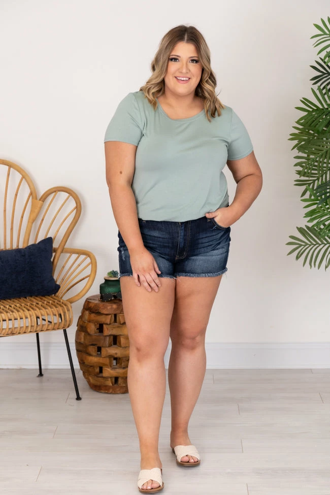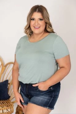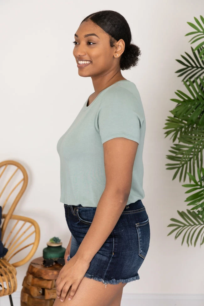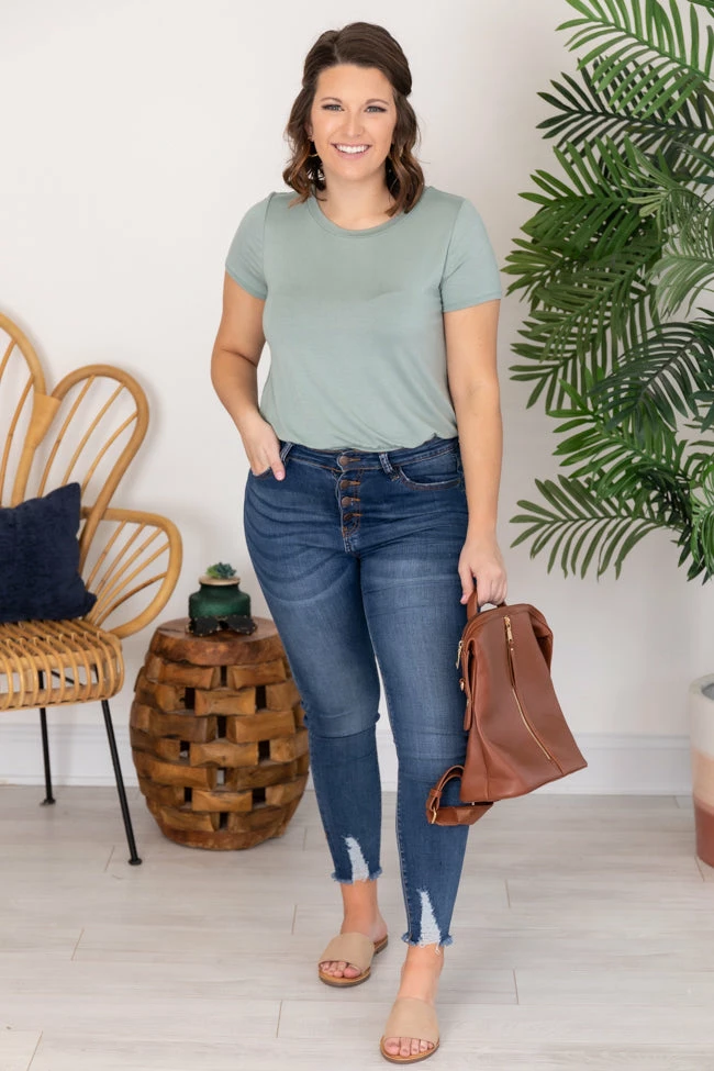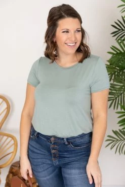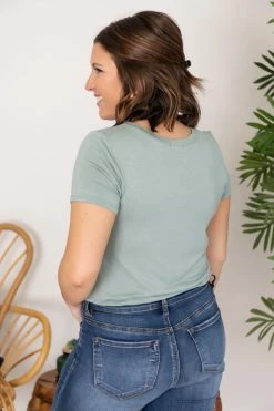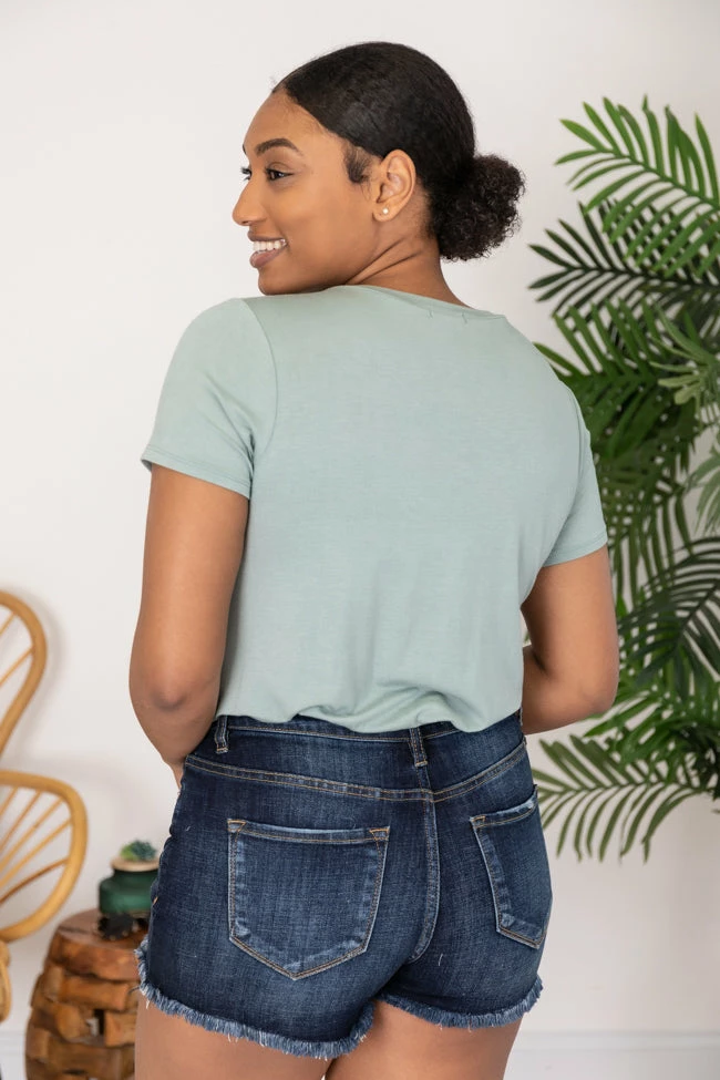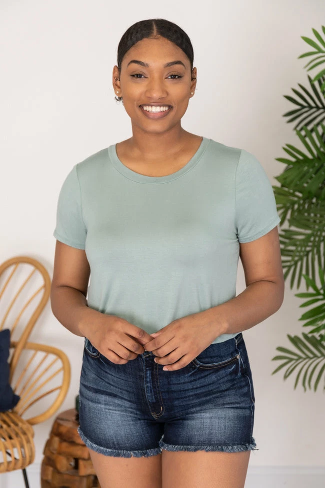 This beautiful bodysuit is sure to be a staple in your wardrobe! Featuring a short sleeve style, a snap closure, and a lightweight fabric, you’ll love wearing this all day. Plus it features a round neck hem and a beautiful sage color. Pair this with high waisted jeans and a cardigan now, and shorts and sandals in the summer!