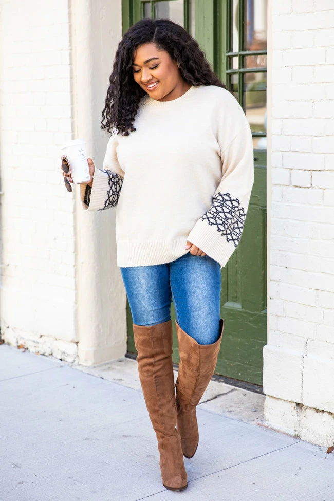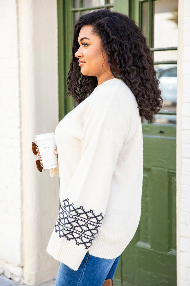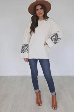 - Crew neckline with long sleeves with printed detailing and ribbed hem