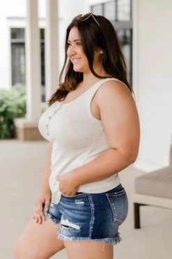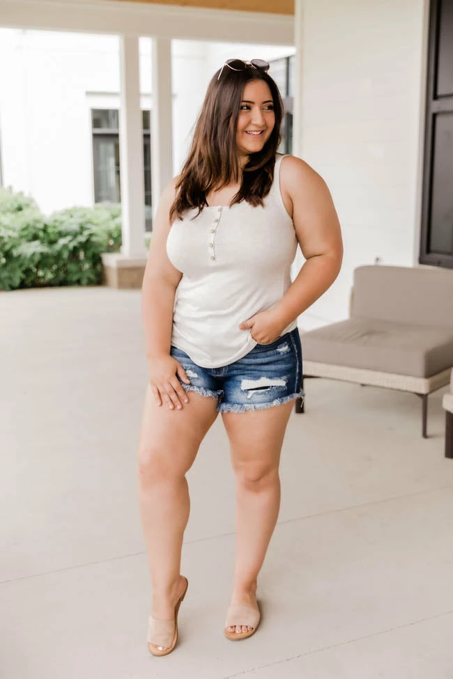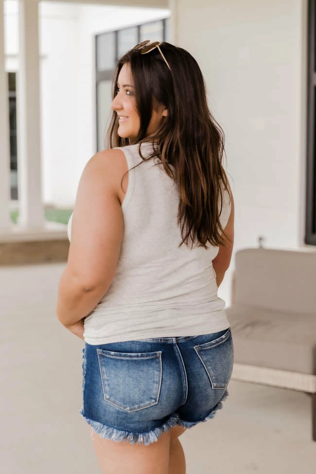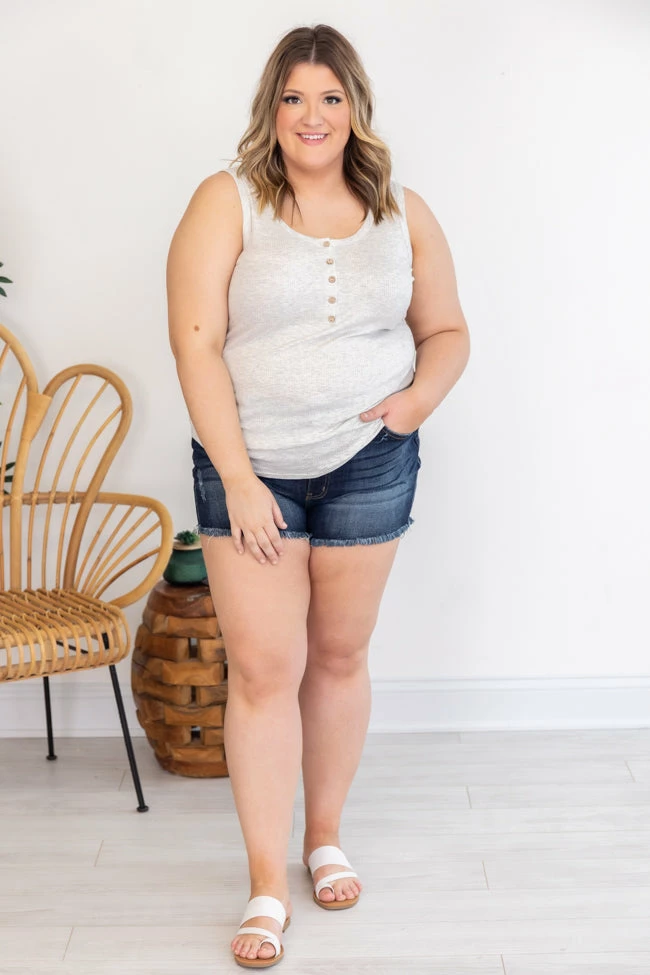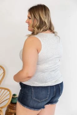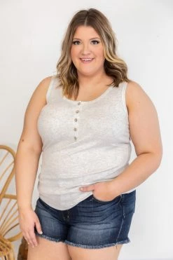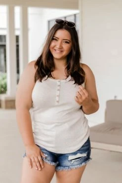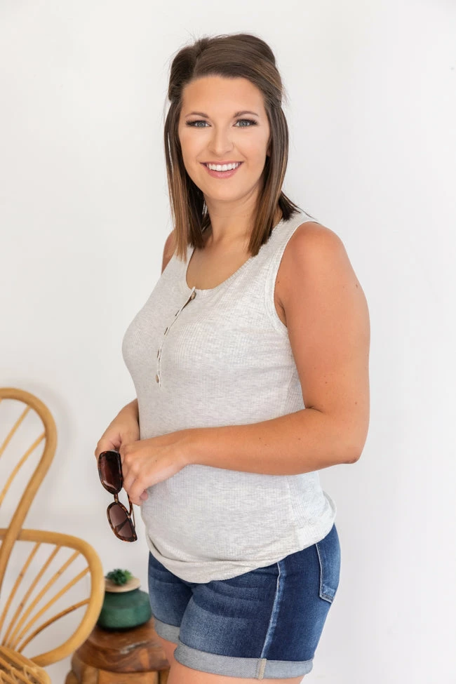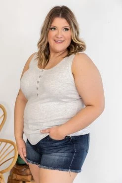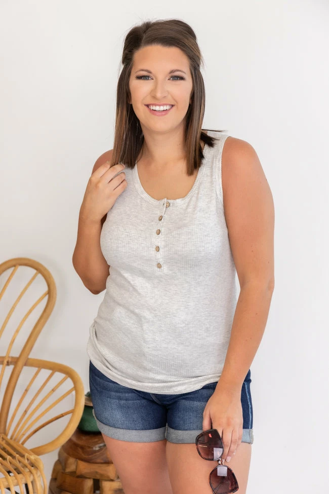 Buy 💯 Pink Lily Grand Appreciation Light Grey Ribbed Henley Tank FINAL SALE 🎉