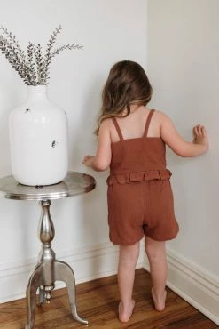 - Ruffle tank hem with a button detail and pull on shortsΒ