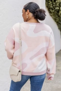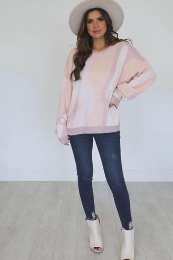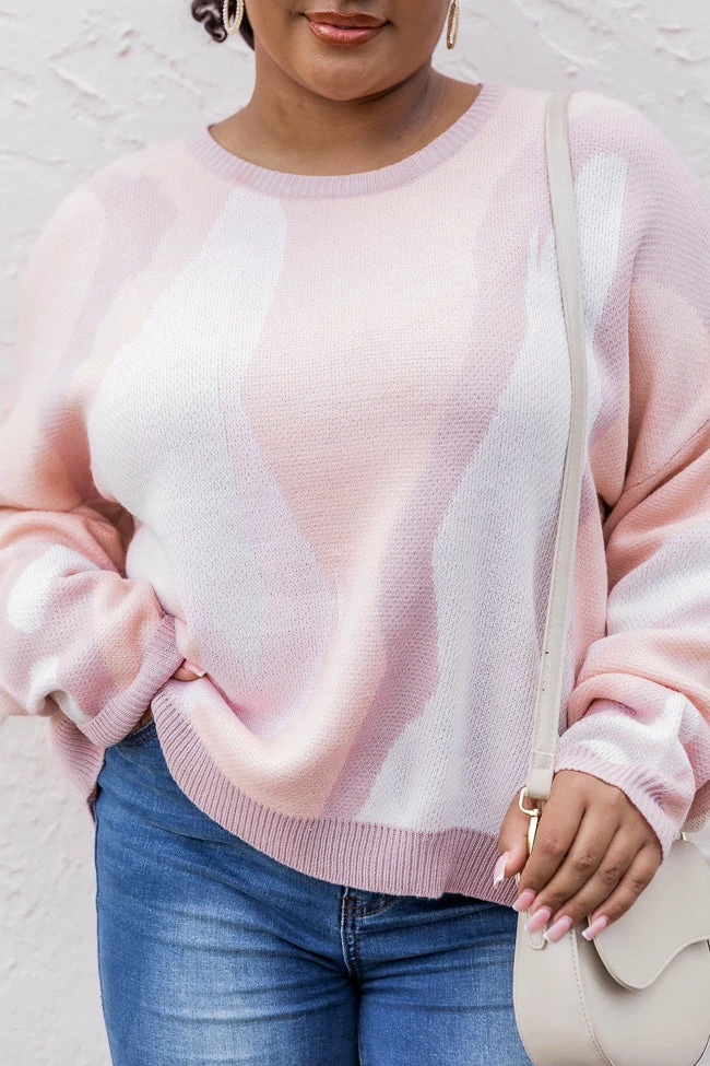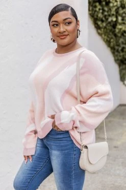 - Crew neckline with long sleeves, colorful swirl pattern, and ribbed hem detailΒ
