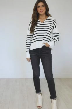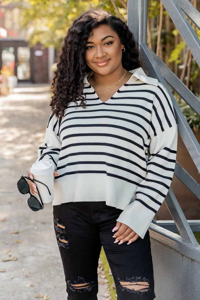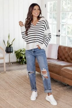 - Collared v-neckline with long sleeves and ribbed hem detailingΒ