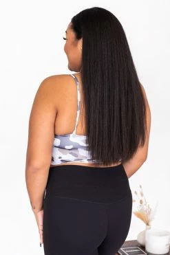 Wear this cute camo print bra top while running in the park. It’s so easy to stay stylish and comfortable while working out in this lightweight material! We are in love with the stunning neutral colors – it stands out beautifully from the crowd. The bust features a little bit of stretch, plus a scoop neckline. The soft material wicks moisture away from you for all day comfort. Just add solid athletic biker shorts and a pair of sneakersย to complete this look!