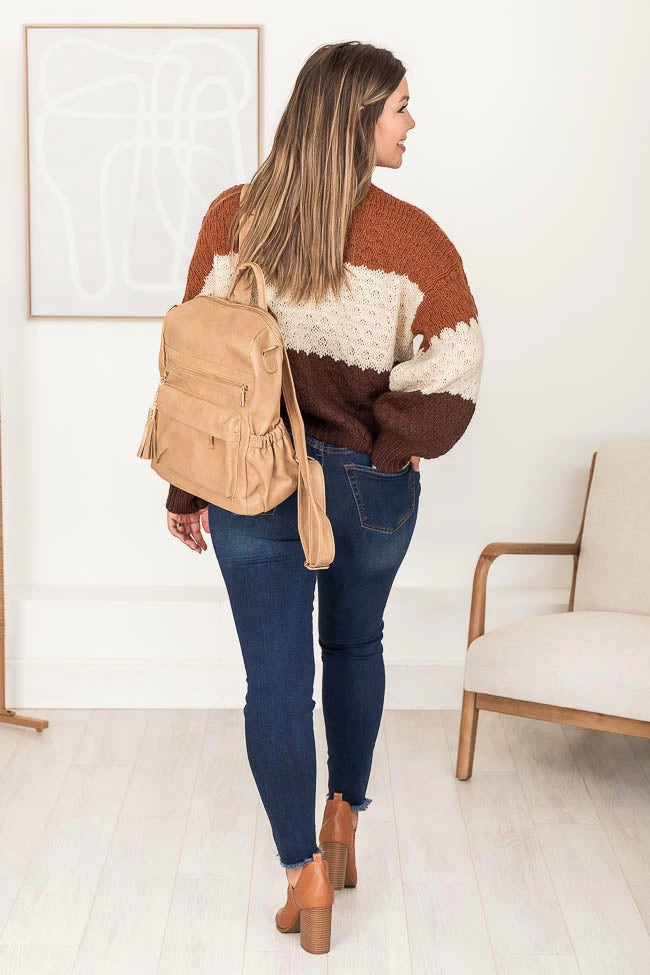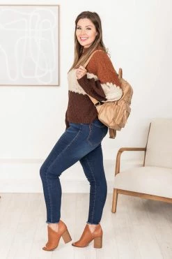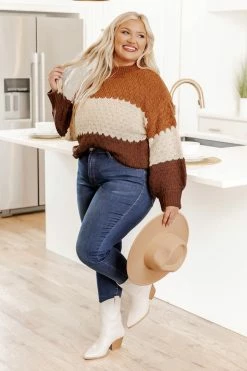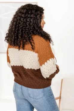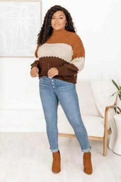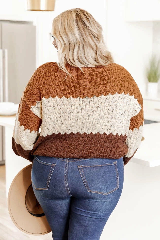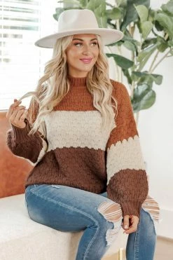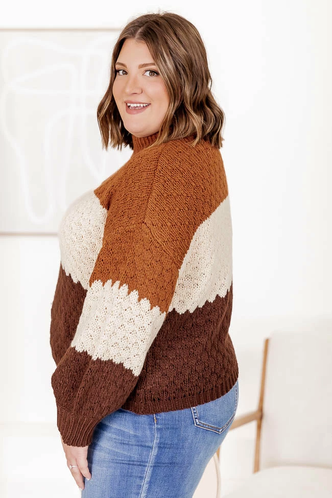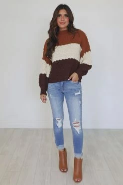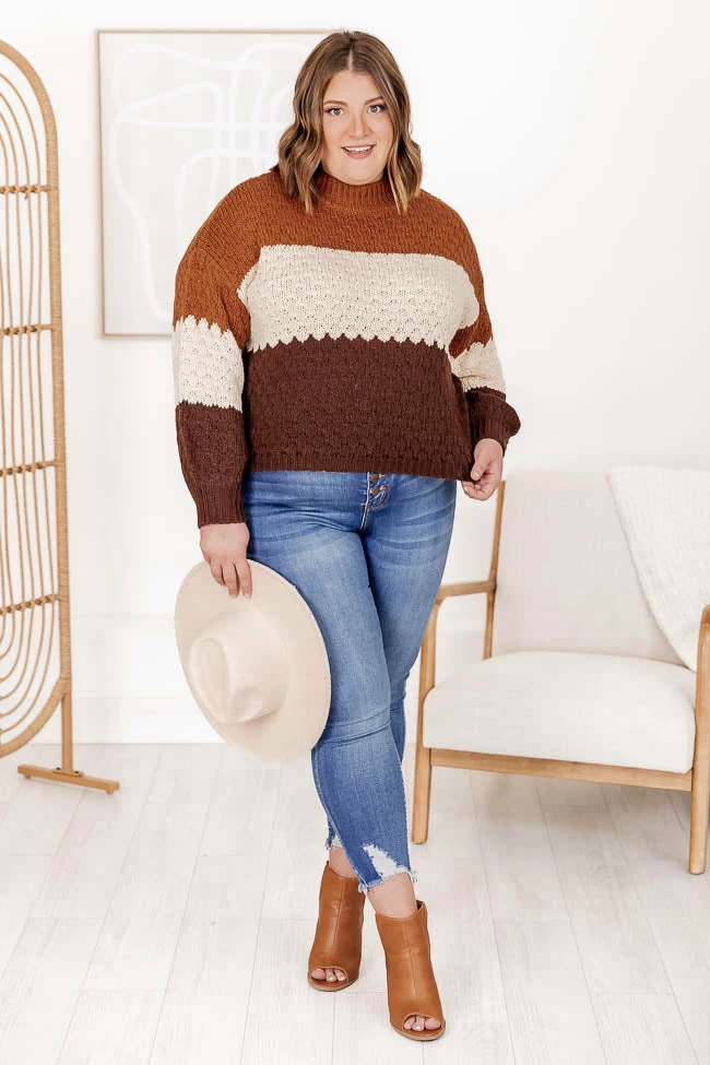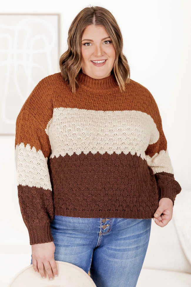 - Mock neckline with long balloon sleeves and ribbed hem and sleeve details with a slight cropped length