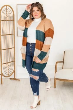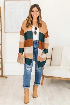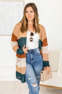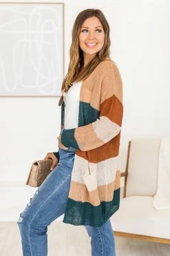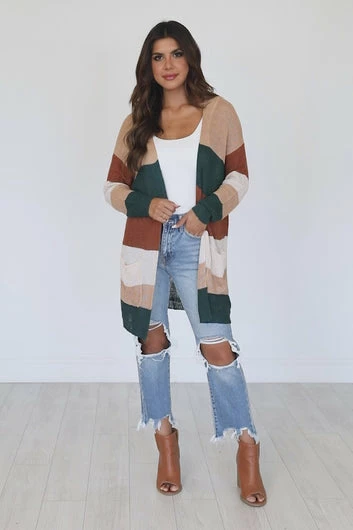 - Green stripe cardiganย