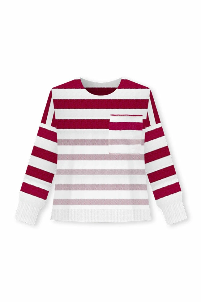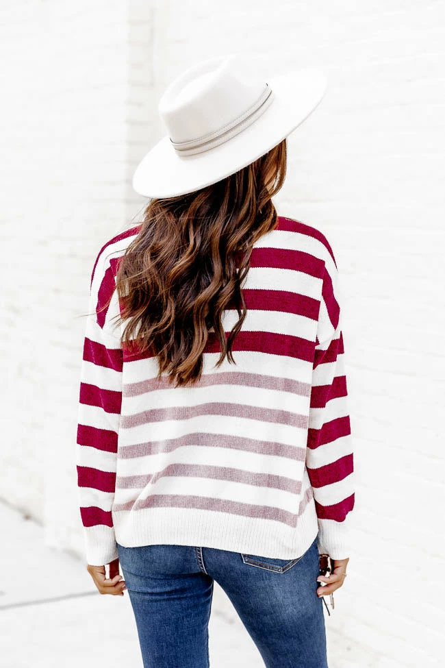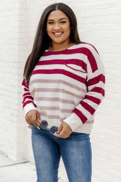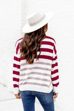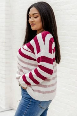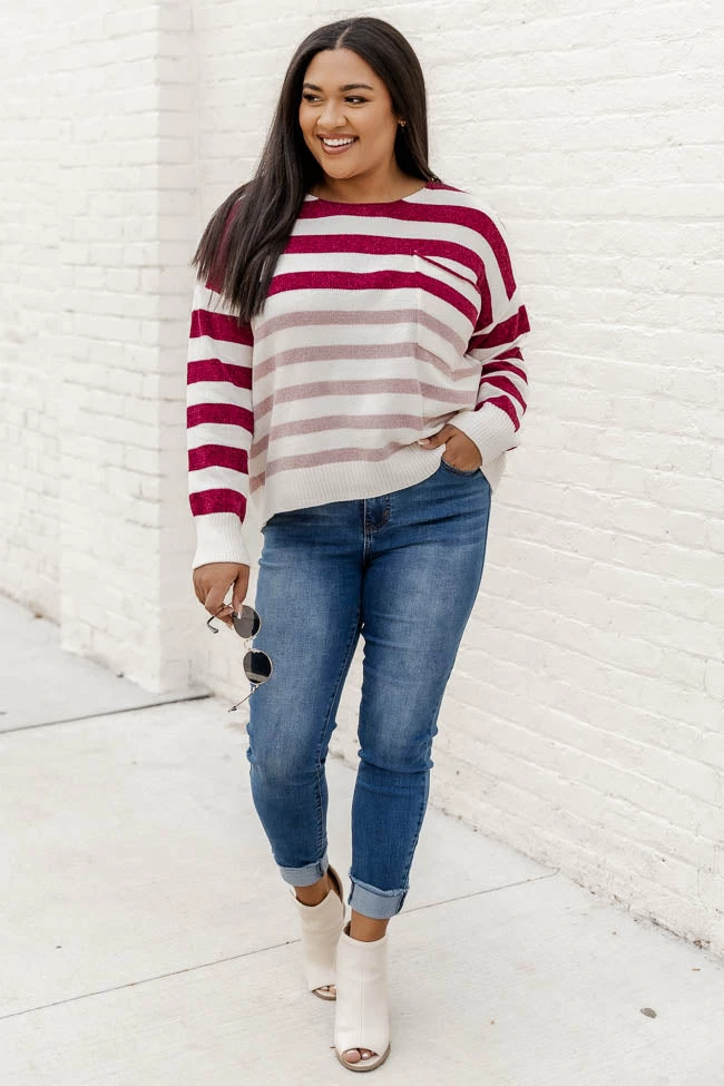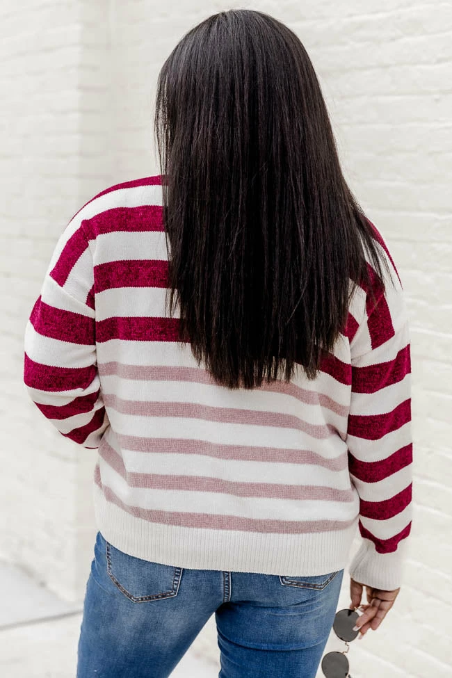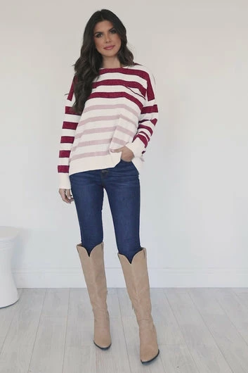 - Wine and pink striped sweater
