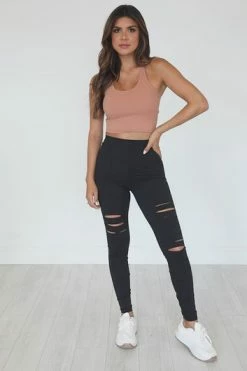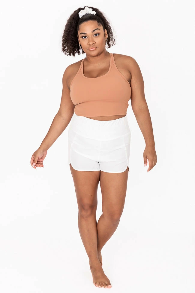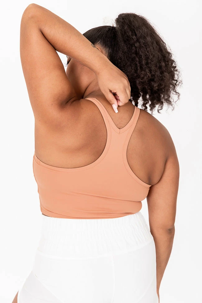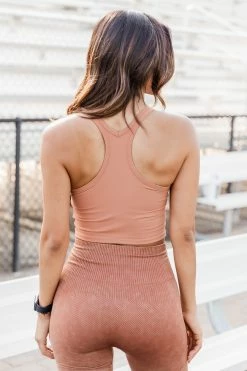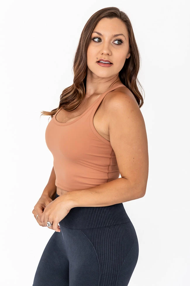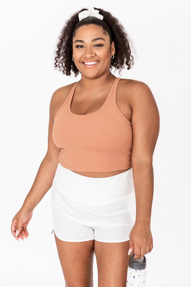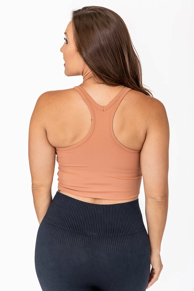 - Scoop neckย with a tank style, racer back, and slightly cropped length