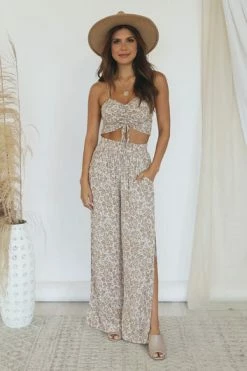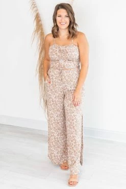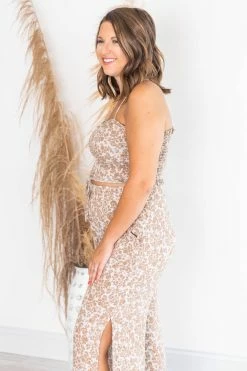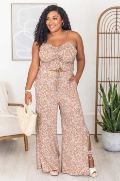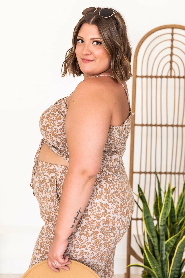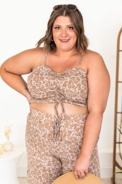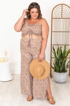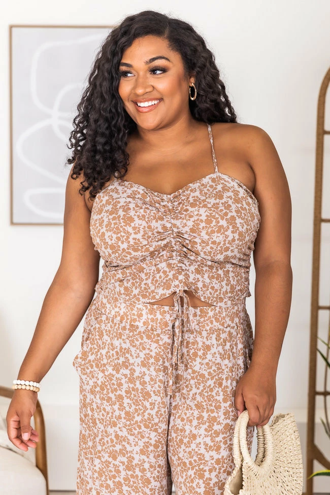 This cute cropped mocha floral blouse is perfect for staying stylish all day long. We love the lightweight fabric and fun print it’s so adorable. This will be your new fav in your closet. It also features a ruched front detail and smocked back. Pair this blouse with jeans or the matching pants for a cute outfit!