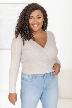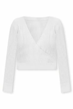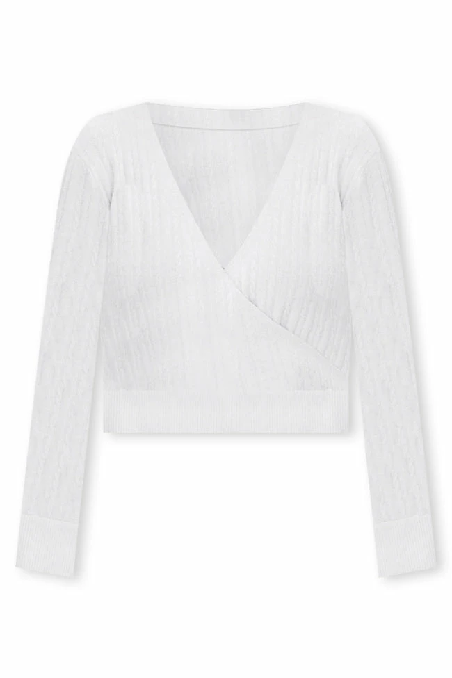 - Wrap style wit v-neckline and long sleeves with ribbed detail on hem and sleeves