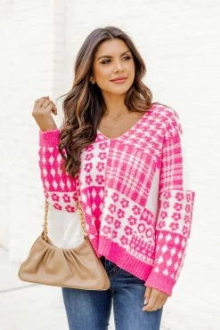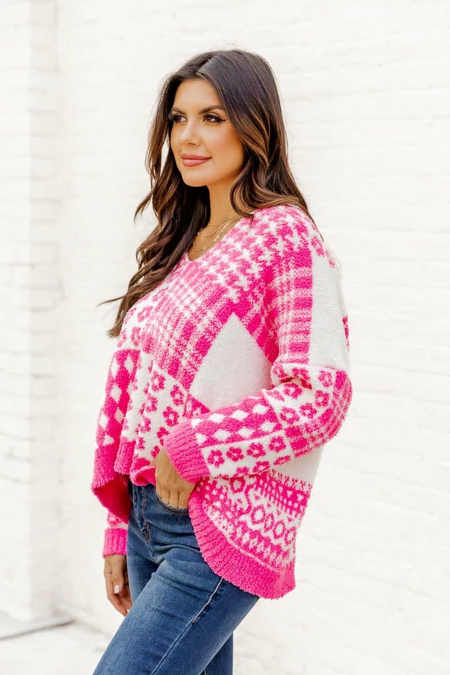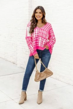 - V-neckline with long sleeves, slight high low style, and ribbed hem detailingΒ