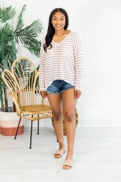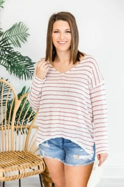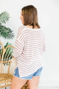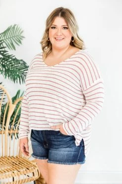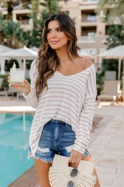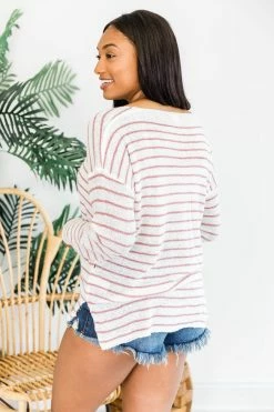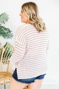 Best Pirce ❤️ Pink Lily Something About You Ivory/Mauve Sweater ⭐