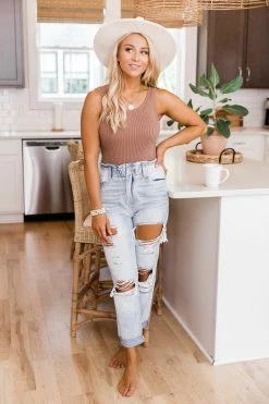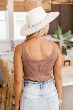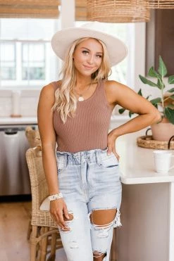 - Mocha sweater tank bodysuitย