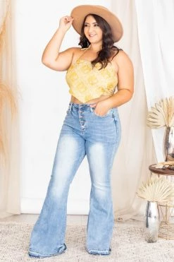 This cute yellow floral cropped blouse will be adorable for any afternoon out! We love the trendy halter neckline and self tying back. This will be your new fav all season long. It also features a lightweight feel and soft satin fabric. Pair this blouse with shorts or a skirt for a cute outfit!