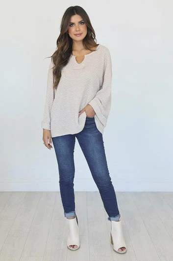 - Waffle knit fabric has stretch, lightweight feel, oversized fit