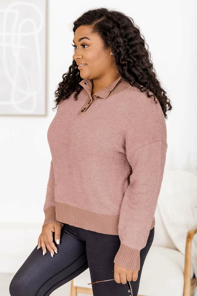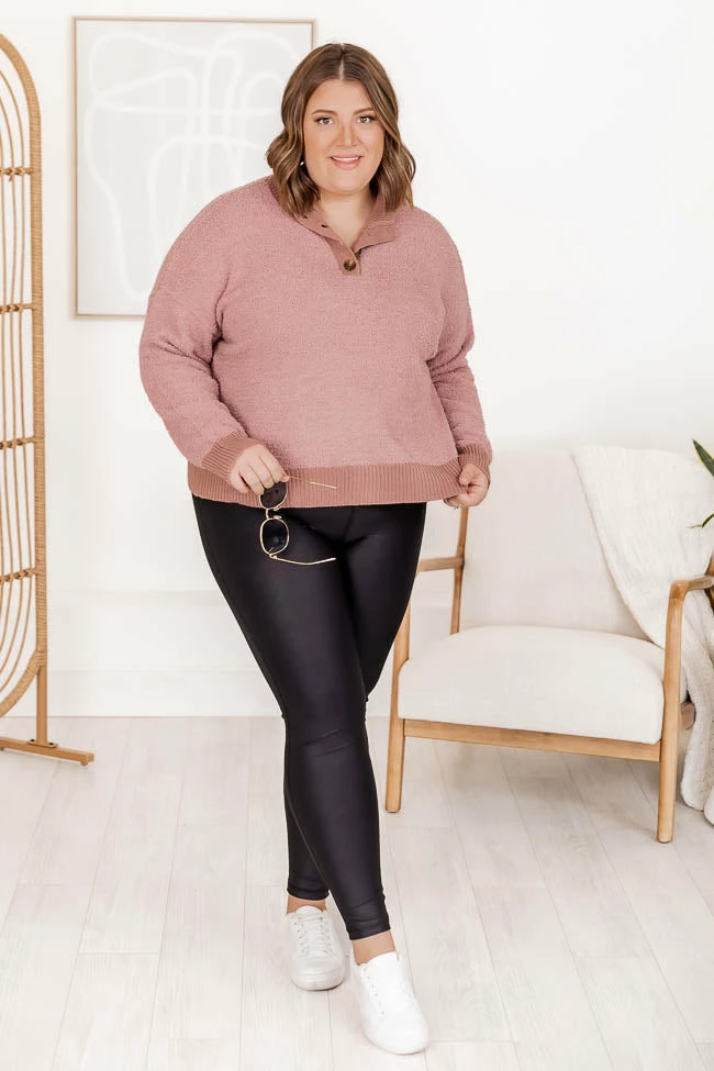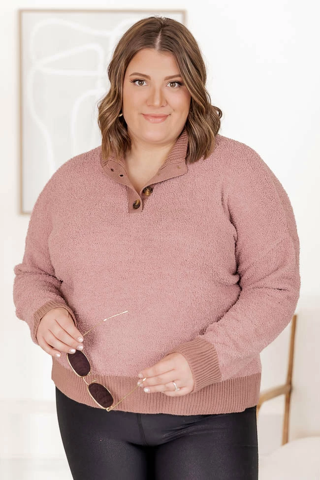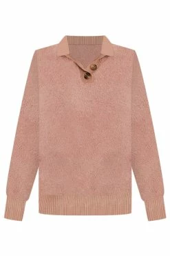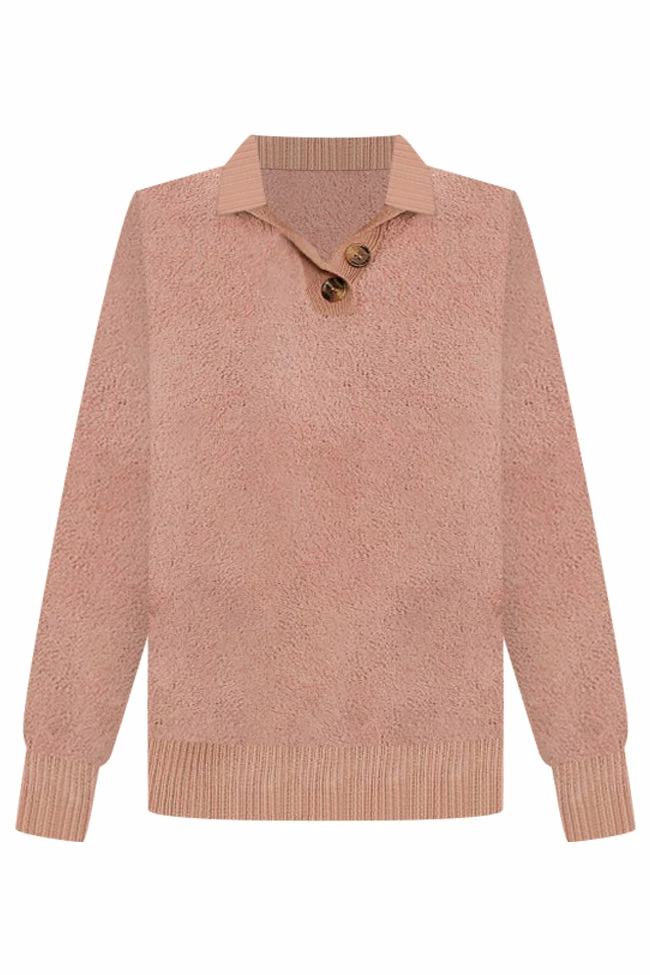 - Henley style with v-neckline with long sleeves and ribbed hem and sleeve details