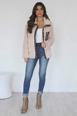 - Collared with snap button down closure, with long sleeves, leopard print lining accents, and functional pocket