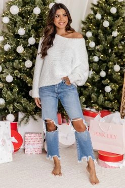 - Slight oversized boat neckline with long balloon sleevesΒ