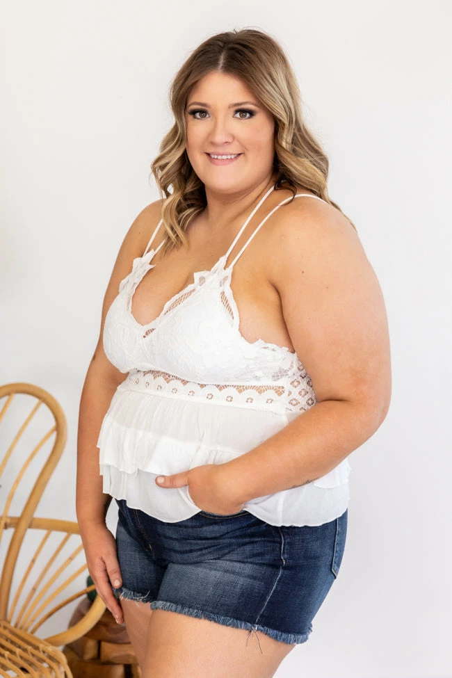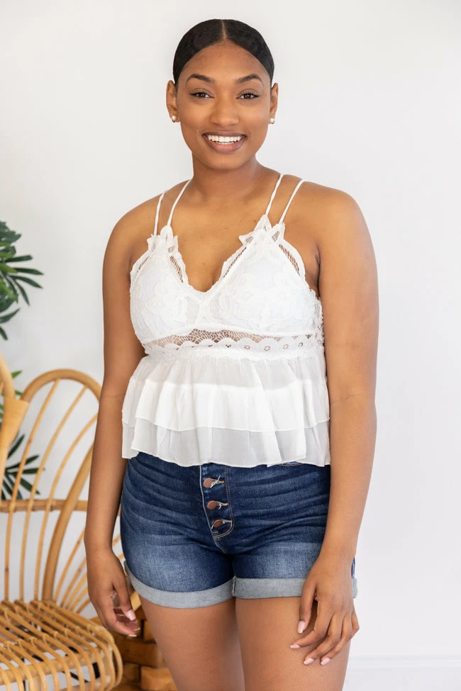 Brand new 💯 Pink Lily True Passion Ivory Lace Tiered Tank FINAL SALE 🎉