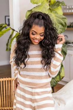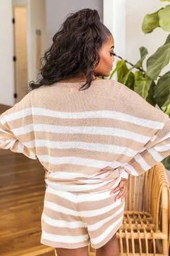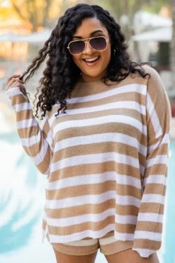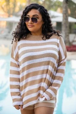 Buy ⌛ Pink Lily Valley Dance Taupe/White Stripe Knit Sweater FINAL SALE ⭐
