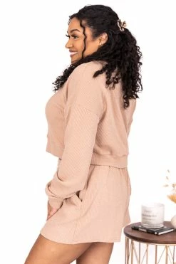 - Taupe lounge corded pullover