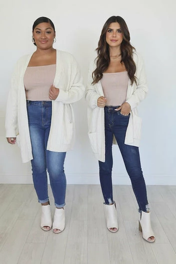- This cardigan runs oversized in the bust and sleeves, fabric has stretch